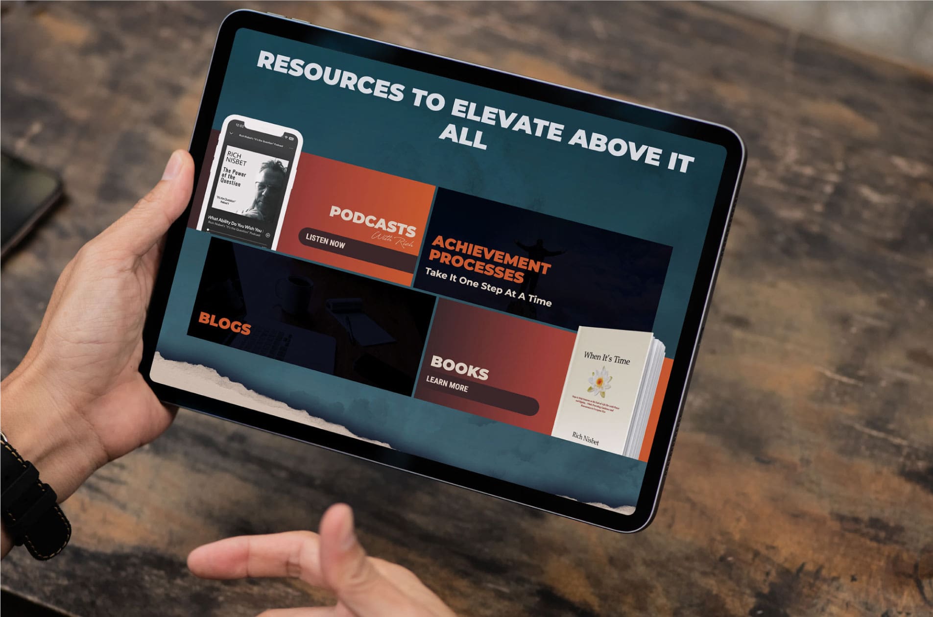 Rich Nisbet is more than just a storyteller - he’s a story collector. Honing in on music, spiritual counseling, and enriching life experiences, his website, Above it All, invites people to learn about his methods as well as share their own stories. Rich Nisbet needed a bold website with a lot of drive and moving parts in order to promote a forum of like-minded individuals and advertise his work. JLB created a custom website with timelines, split screens, and rotating quotes in the branded colors and fonts Rich Nisbet desired.