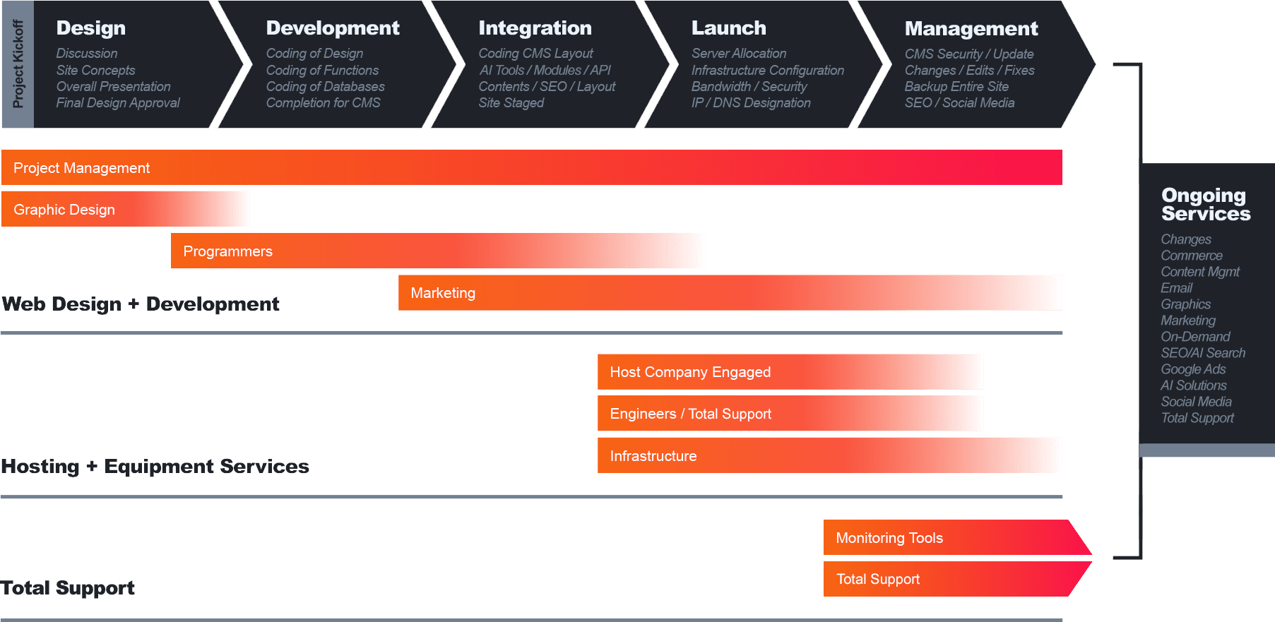 Businesses need someone they can call for the new website, domain, hosting, email, marketing, design, Ads, Social media or moves/adds/changes and then make it all work together. How do you make them all work together, who do you call for support and where do you go to get quality business-class help?